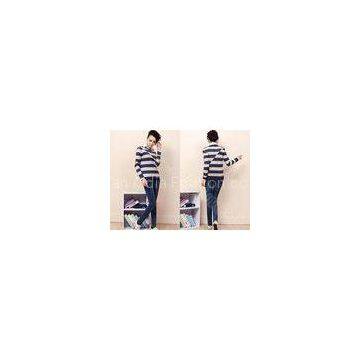 Popular Cotton Ladies Fine Knit Sweaters , Long Sleeve Pullover With Two-tone Irregular Stripes