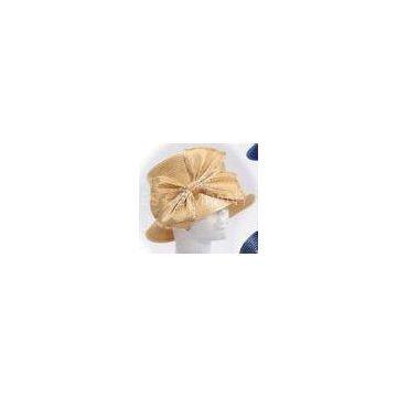 100% Polyester Satin Braid Beige Ladies' Church Hats , Big Bow Diamond