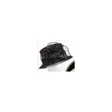 Halloween Charming Black Abaca Sinamay Ladies Hats , Rolled Edge Bow