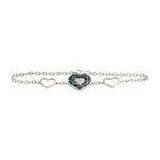 White Zircon Bracelet With Black Ceramic , Silver Heart Bracelet CSB0634