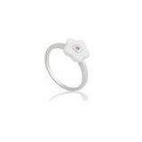 White Ceramic Silver Ring With Flower Shape , Rhodium Plated Ring CSR0862