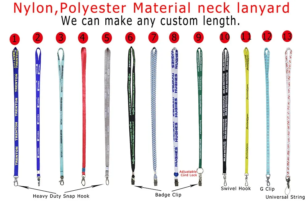 1.Hardware attachments available:Swivel Hook,Badge Clip,Badge Stap,Key Ring,Universal String,Heavy Duty Snap Hook,Carabiner