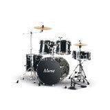 Black Complete 5 Piece Birch Wood Acoustic Drum Set Percussion Kit