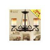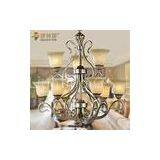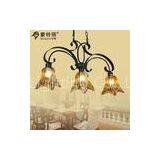 Glass Wrought Iron Ceiling Chandelier / Resin Ceiling Lighting Fixture