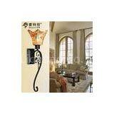 Wrought Iron Glass Modern Indoor Wall Lights / Vintage Wall Light For Home Decoration