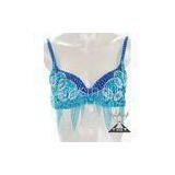 Milk Silk Tribal Belly Dance Bras Blue With Beaded Sequin For Dancing Party