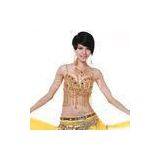 Fancy Yellow Belly Dance Bras With Jewels / Tassel For Dancing Performance