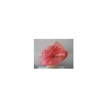 Stylish Red Sinamay Hats For Women Trimmed With Elegant Big Bow , Wedding Caps