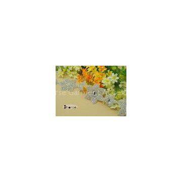 Flower Design Sew On Bling Bling Decorative Rhinestone Beaded Trim For Wedding Dress