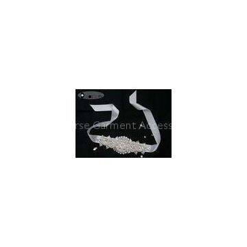 Silver Beaded Bridal Rhinestone Sash For Decoration , 5.2 cm Width