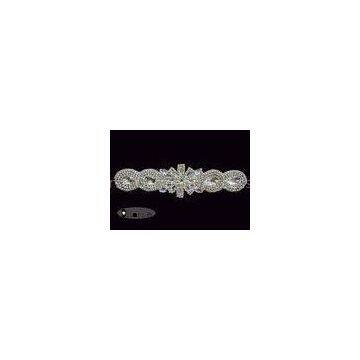 Iron On Silver Beaded Rhinestone Bridal Sash Applique For Wedding Dress