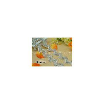 Leaf Shape Iron On Beaded Trims For Wedding Gowns , Rhinestones Trim By The Yard