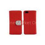 IPhone 5S Leather Cell Phone Case With Card Slot / OEM Red Mobile Phone Shells