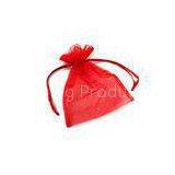 Small Red Organza Drawstring Pouch Heat-Transfer / Silk Screen With Ribbon