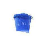 Eco Friendly Organza Drawstring Pouch , Blue Gift Bag With Ribbon Drawstring