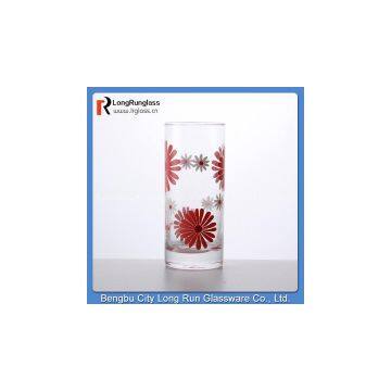 Product Name: LongRun 9oz flowers printed drinking water cylindrical glass cup wholesale