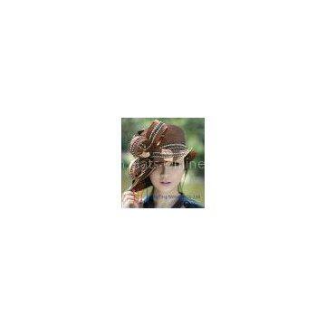 Brown Polyester Church Women Hats Satin Ribbon Hats for Church Party and any Special Occasion
