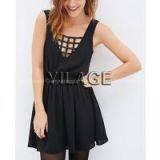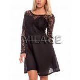 2015 New Design Hot in Summer Low-V Backline Open Back Lace Chiffon Dress