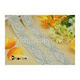 Silver Iron On Rhinestone Beaded Trim For Dresses , Rhinestone Trimming