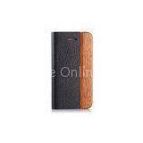 Bamboo Wood and Leather Iphone 5S Folio Protective Cases / Flip Phone Cover Multi Color