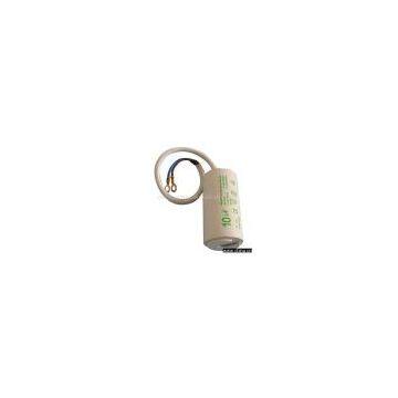 Description:Features and use: It is small in bulk, has long life-span and good self-healing Characteristic. It is widely used as the start-up and running capacitor that is special for micro water pump, cleaning machine, washing machine, and single-phase water pump motor. Technical features: climate types: 40/70/21 Capacity volume variance: +5%-5%, +10%-10% Testing voltage: between leading-out 1. 75UR, 10S no breakdown between leading-out end and shell: 2200VAC, 10S no breakdown Insulation resistance: between leading-out ends:>3000Mn. UF between leading-out end and shell:>1000Mn Loss tangent: tang