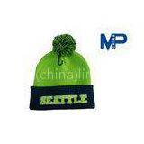 Embroidery Green Color Logo Beanie Hats With Sewing Knitting Ball / Baseball Cap