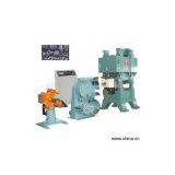 Description:The GD series high speed precision press: Our company GD series high speed precision automatic line is mainly applied in the industry of manufacture the motor rotor and stator, electron, electric appliance dome and connector. The main specification & features 1 Our products adopt four-column & double points structure, with one promoted cylinder on each of the four columns. The sliding block can be promoted in a large range on the guide pillar by the function of the cylinders. Thus it is convenient to change sub-dies and make some tooling maintenance. And the cylinders also have the function of hydraulic overload protection. 2 We change the traditional crankshaft connecting rod structure to crankshaft sliding block structure of the spindle power structure of the double points, thus it not only increase the rigidity but lay the double power point with a farther distance, which increase the capacity to bear eccentric load in the direction. At the other direction of the slide, namely the direction of the forward and backward guide way, we change the single group roller guide rail guidance to up and down double groups roller guide rail guidance. Because of the long distance of the up and down roller, the guide guidance is with high precision and the capacity of the bearing the eccentric load of the whole press of is very strong. 3 Main parts such as pedestal, upper beam and sliding block of the press are all precision casting formed to fluid state sand. Because of good nature of anti-vibration and anti-distortion after aging treatment, it can keep long-time precision, diminish the noise and make the press with a good shape. 4 Installed eccentric covers at both sides of the spindle, assembled the counterweight clump inside the eccentric covers to eliminate the imbalance aroused by the eccentric covers. 5 Some balancing springs are installed on the upper beam of the press to balance the weight of the slide parts and the upper mold, and promote precision through the balance adjusting bolt. 6 The whole production line adopts PLC control. The variable parameter can be input by the human-machine. 7 Because of adoption of the oil mist lubricative technology, it can greatly reduce the hot- deformation and promote the precision of the bottom stop. Press GD63 series specifications: Capacity: 630kN Limit of capacity: 3mm Stroke length: 30mm Strokes per minute: 150