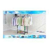 Steel Folding Metal Clothes Rack With Wheels / Cloth Hanger Telescopic Clothing Racks