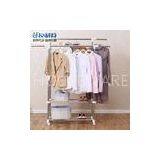 Modern Stand Folding Double Pole Clothes Rack With Wheels / Portable Drying Hanger