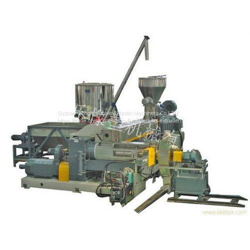the process : kneader dispersion mixer - cone double feeding machine - single screw extruder--- brace head and net exchanger--granule machine