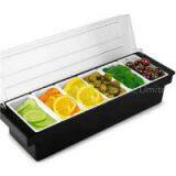 BC012 Acrylic + Stainless Steel Bar Caddy 5pcs Condiment Tray Fruit Holder Storage Containers