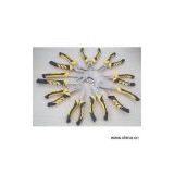 Description:1. Long nose pliers 2. Bent nose pliers 3. Flat nose pliers 4. Water pump pliers 5. Combination pliers 6. Wire stripper pliers 7. Round nose pliers 8. Heavy duty end cutting pliers 9. Diagonal cutting pliers 10. Big head diagonal cutting Features: 1) Material: drop-forged carbon steel or Cr-V steel 2) Forging and stamping, heat treatment to the whole body to increase intensity and hardness (HRC: 40 - 48) and special treatment for blade (HRC: up to 58) 3) Size: 165mm/6", 180mm/7", 205mm/8" 4) High cutting performance, easily and comfortable used, durable using life 4) Surface dealing: black finished, pearl finished, black nickel finished, chrome plated, nickel plate and so on 5) Handle: plastic dipped, PVC and TPR, 1 or 2 colors 6) Quality according to the grade 1 international standard, very popular in European and American Markets. Easy to use, high quality, durable using life 7) Customers' design and OEM are welcomed Inner packing: Card hanger, double blister, sliding card packing, skin packing or according to clients' requests