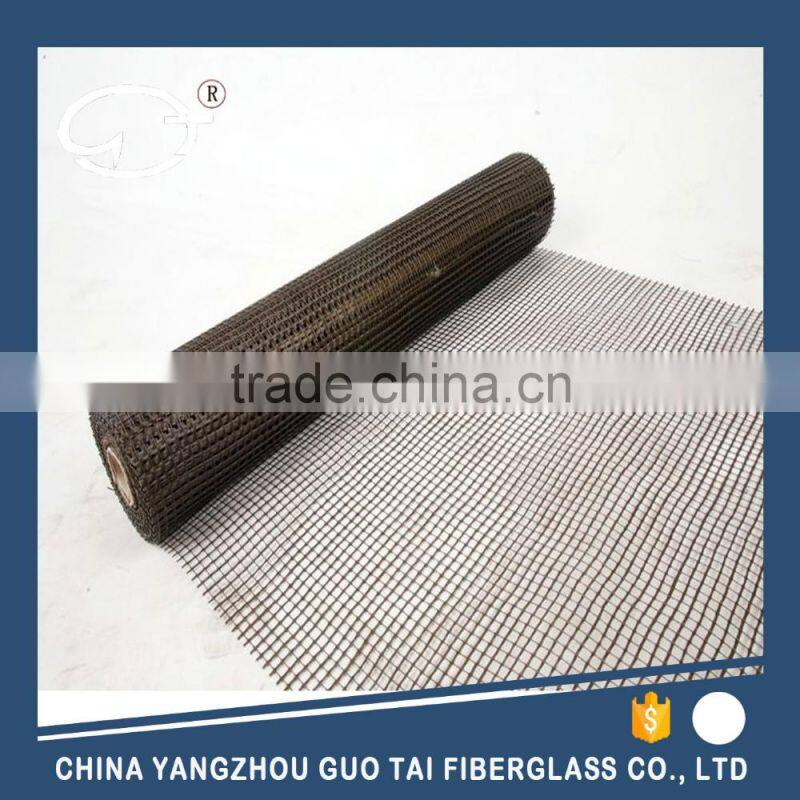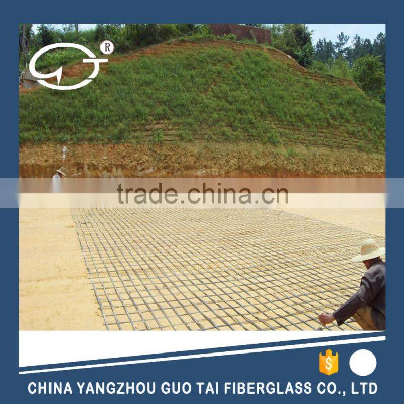 Fiberglass geogrid is a kind of plane network shape that selects excellent reinforcement non-alkali fiberglass yarn. It is woven into base material by using foreign advanced warp knitter and warp knitted directional structure. It make full use of yarn strength in textile, improve its chemical performance and make it have good tension resistance, tearing resistance and creep resistance and formed by excellent modified asphalt coating treatment.