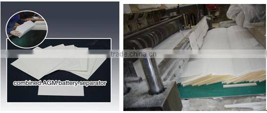 According to American Standard, it is compunded by AGM paper and glass mat, with two sticky lines. The compounding separator intergrate the advantages of the two kinds of mats, which is of high pore rate,low electric resistance good heat resistance and antioxidation. It is adapted to starter type Lead acid battery. The battery with the compunding separator is with very good shockproof performance, and avoid the plate’s active material fall off from car shaking, so that longer the lifetime of the battery.