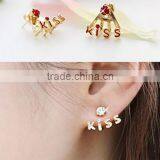 Girls Women Lovely Crystal Rhinestones Letter Kiss Ear Earring Studs