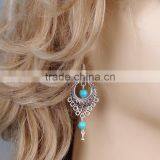 Hollow Out Turquoise Beaded Dangle Earrings Silver Tone Drop Earrings