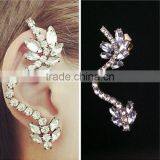 Punk Gothic Rock Women Earring Rhinestone Crystal Leaf Ear Cuff Warp Clip Stud