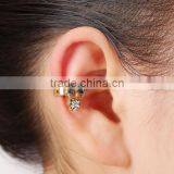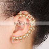 Rhinestone Crystal Father Leaf Earrings Cuff Metal Ear Wrap