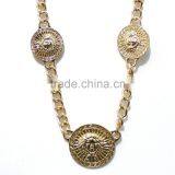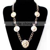 Gold Three Lion Heads Necklace Chain Link Celebrity Statement Jewelry
