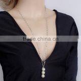 Double Layered Simple Tassel Chain Necklace Pearl Beaded Pendant Necklace