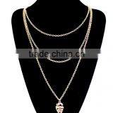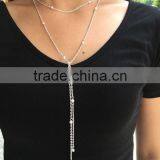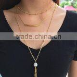 Tube Tassel Rhinestone Crystal Beaded Pendant Necklace Three Layered Link Chain Simple Necklace