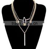 Gold Three Layered Anti V And Bar Necklace Long Thin Thick Jewelry