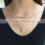 Four Layered Link Chain Simple Necklace Tube Bar Beaded Pendant Necklace