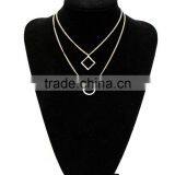 Gold Double Layered Square Circle Necklace Thin Geometry Jewelry