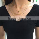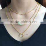 Gold Silver Three Layered Simple Chain Necklace Beaded Pendant Necklace