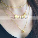 Gold Three Layered Pendant Necklace Long Thin Chain Layering Jewelry
