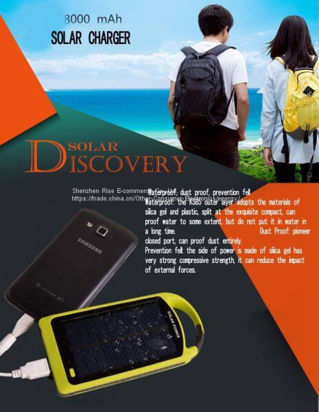 Factory Wholesale High Quality Solar Charger Waterproof Solar Charger Solar Power Bank 8000mAh For Iphone Smart Phones.
