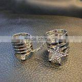 New Hot Design Zinc Alloy Double Chain Link Finger Ring With Star and Rhinestone