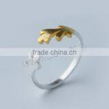 New Adjustable Zinc Alloy Double Finger Ring Leaf Gold Color Rings With Rhinestone