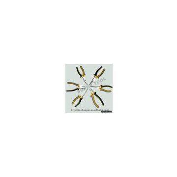 Description:Features: 1) Material: drop forged, carbon steel 45~70, T8, CR-V, CR-Ni, and stainless steel 2) Surface: fine polished, mirror polished, chrome plated, nickel alloy plated, satin and black finishing 3) Handle: dipped, PVC and TPR, 1 or 2 colors, and SGS report available 4) Sizes: a) Combination pliers: 6", 7", 8" b) Side cutting pliers: 5.5", 6", 7.5" c) Long nose pliers: 5.5", 6", 8" 5) Whole body heat treatment, cutting both 1.8mm steel wire and A4 paper is basically required Inner packing: White box, color box, sliding card, double blister, head blister, paper or plastic hanging card, tool set Outer packing: Standard export carton, or according to clients' requests
